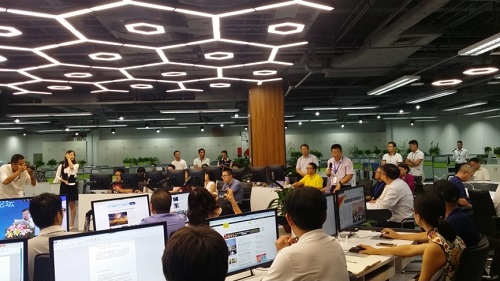 在這場(chǎng)全國晚報(bào)業(yè)的盛典之后,參加本次全國晚協(xié)年會(huì)的嘉賓們一同參觀了羊城晚報(bào)全媒體采編指揮中心(即“中央廚房”)。作為羊晚報(bào)業(yè)集團(tuán)在推動(dòng)媒體深度融合過程的一項(xiàng)代表性成果,羊城晚報(bào)的“中央廚房”獲得了報(bào)社社長(zhǎng)劉海陵的高度評(píng)價(jià)與重點(diǎn)推薦,同時(shí),由報(bào)社精心策劃、剪輯的一則關(guān)于“中央廚房”全面介紹的宣傳大片,也在這次參觀交流會(huì)上震撼播出,并收獲媒體同行的肯定與認(rèn)同。